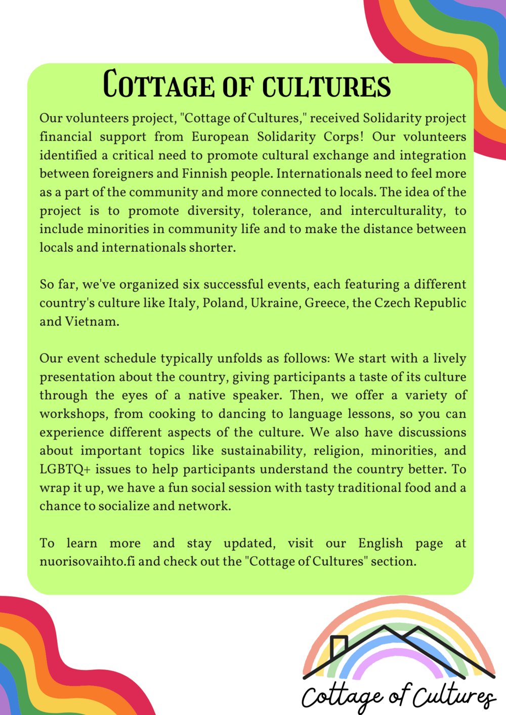 - Our Cottage of Cultures project